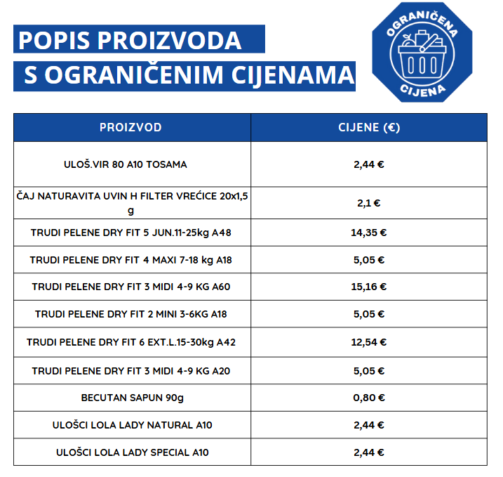 POPIS PROIZVODA S OGRANIČENOM CIJENOM PREMA ODLUCI VLADE RH 03.02.2025.
